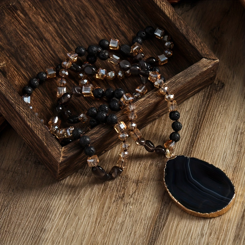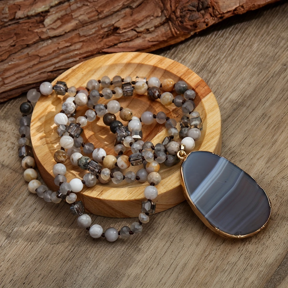 Bohemian Style 6mm Natural Stone Glass Knotted Striped Agate Water Drop Pendant Necklace