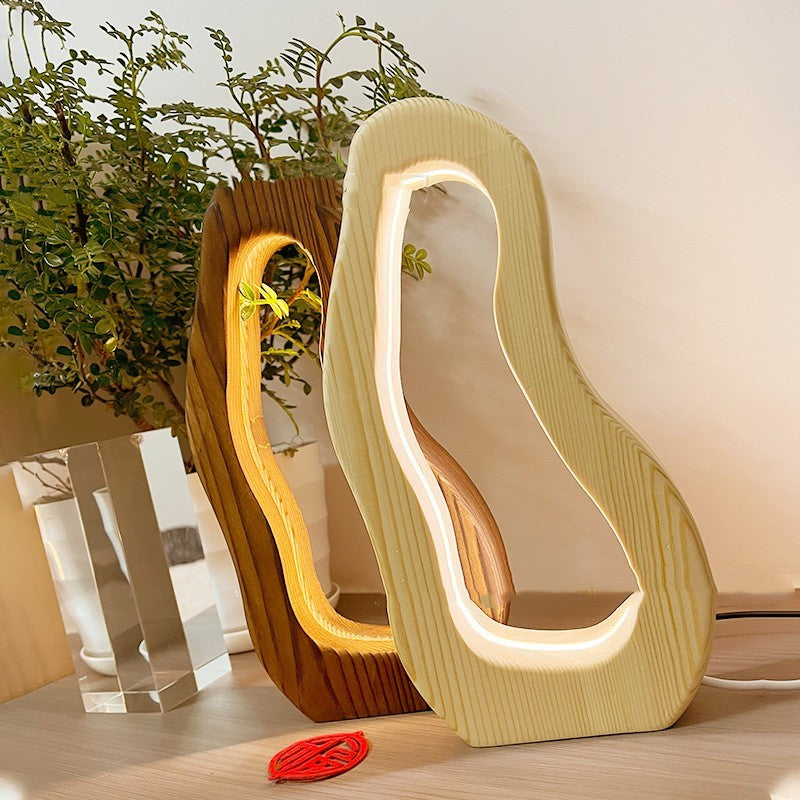 Hollow Design LED Simple Style Desktop Wooden Table Lamp