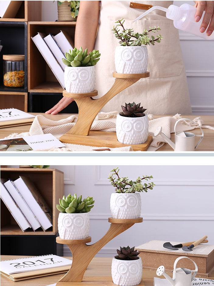 Decorate any room in your home with this unique and charming bamboo shelf and owl planter pots. The Owl Wooden Tree would make a lovely birthday, shower or wedding gift!