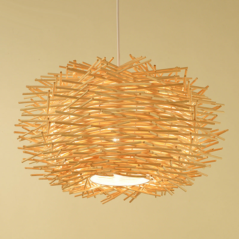 Illuminate your home with the delightful "Pastoral Bamboo Woven Straw Hat Bird Cage Chandelier" and infuse your living space with a touch of countryside allure.