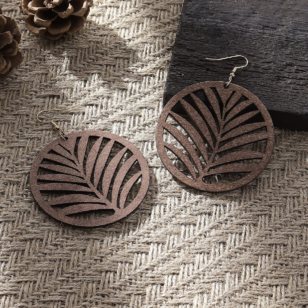 Simple Hollow Out Geometric Wooden Earrings
