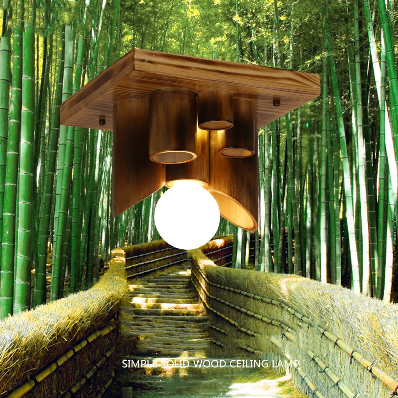 Wooden Bamboo Hemp Rope Ceiling Lamp